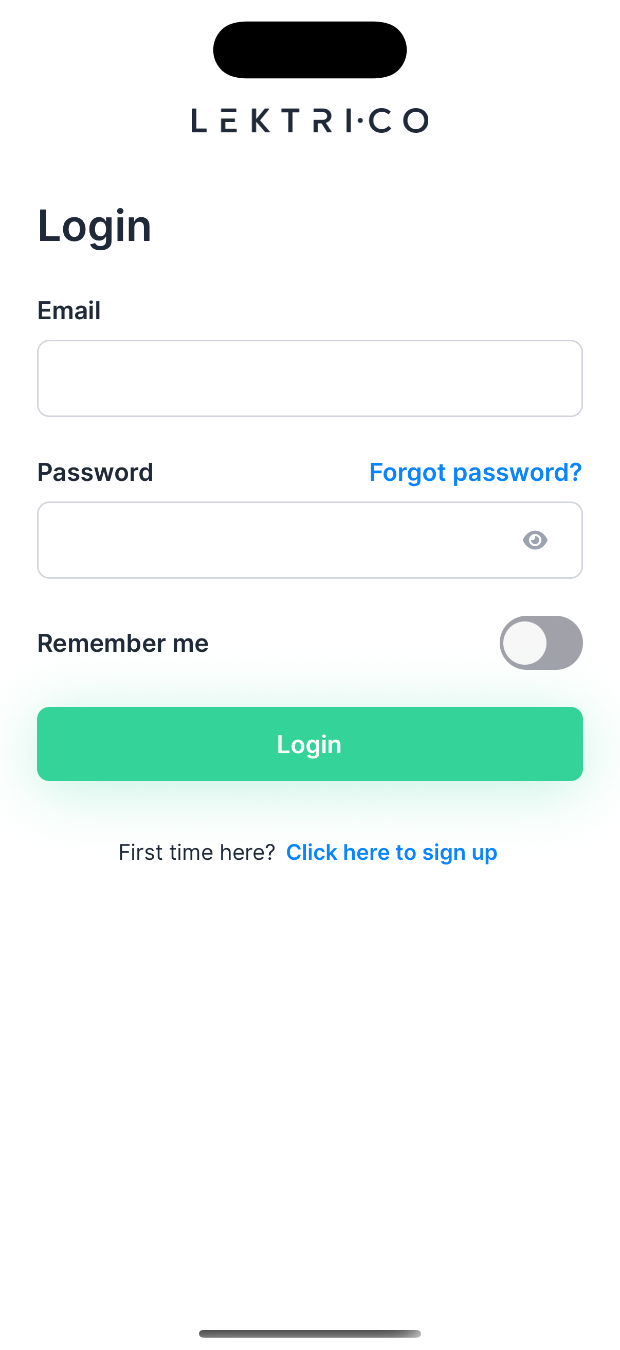 Open the LEKTRI.CO app to access the login screen. Enter your email and password to sign in.