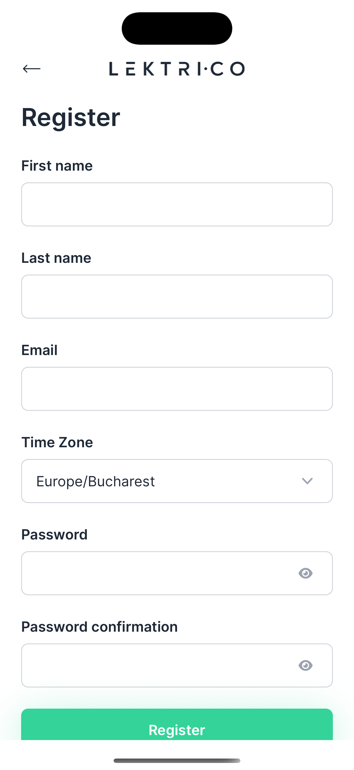 Create a new LEKTRI.CO account by filling in your personal details.