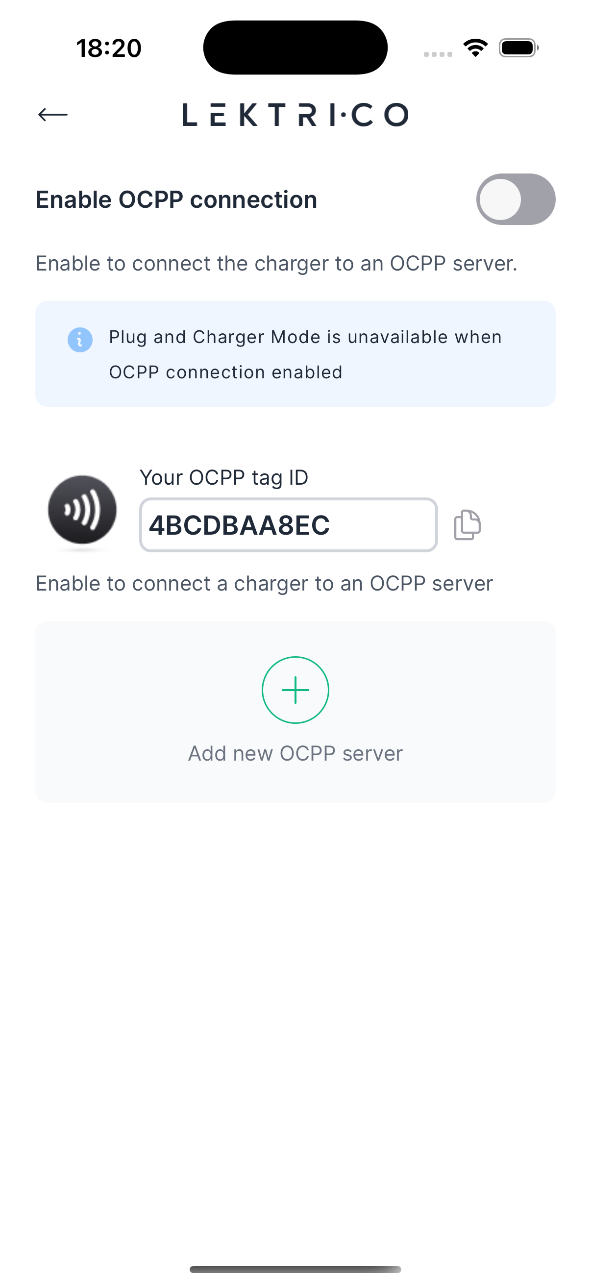 > NOTE: When OCPP is enabled, "Plug and charge" mode is automatically disabled.