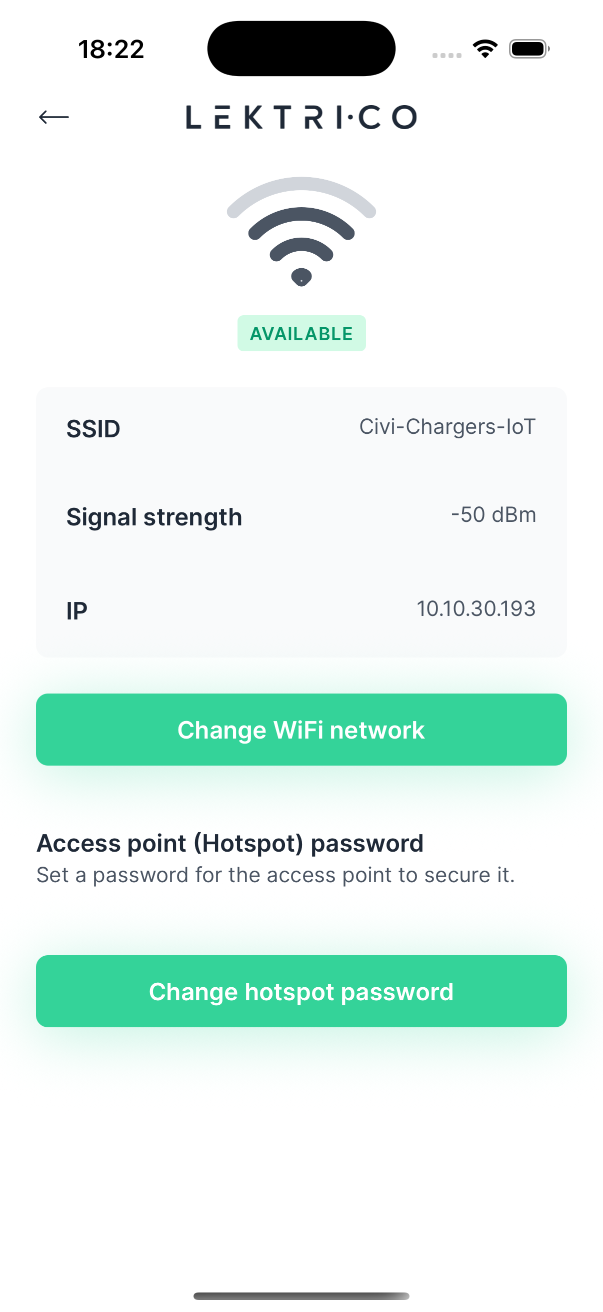 - "Change WiFi network" — Connect the charger to a different WiFi network